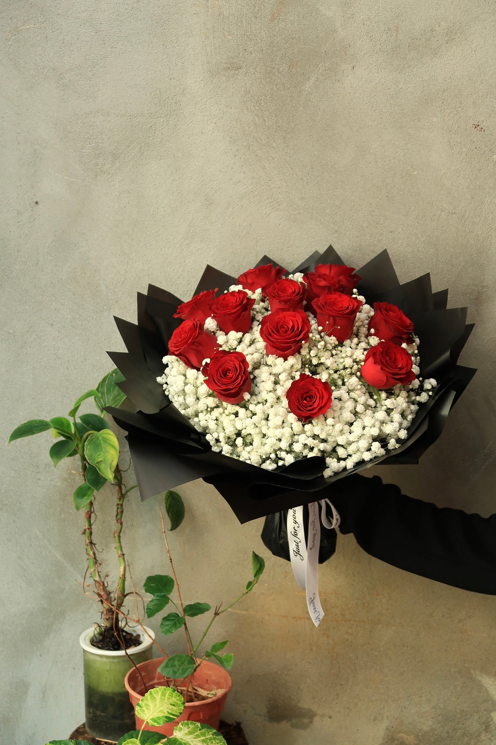 🌹 Flowers Choices: 13 red roses and baby's breath