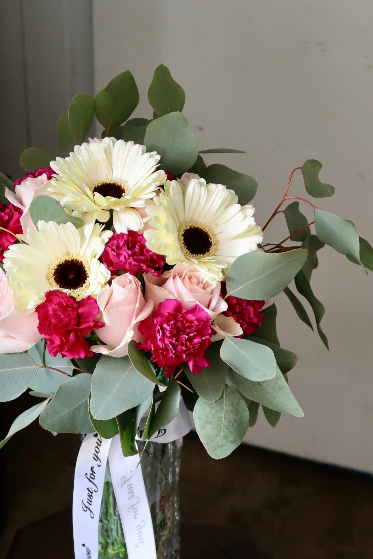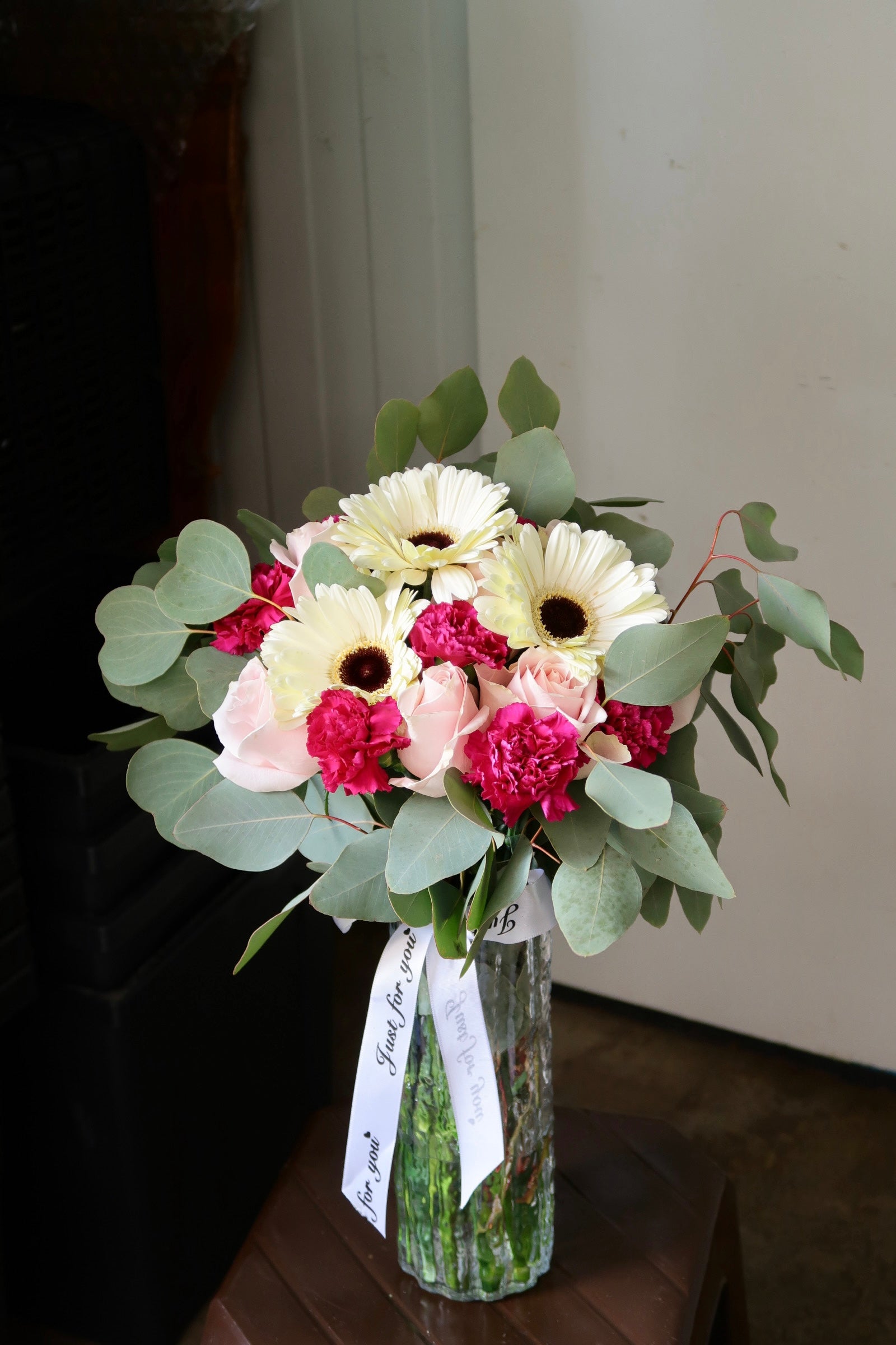 Due to bumpy roads during delivery, some water may spill - just place the bouquet upright, and it will be good!